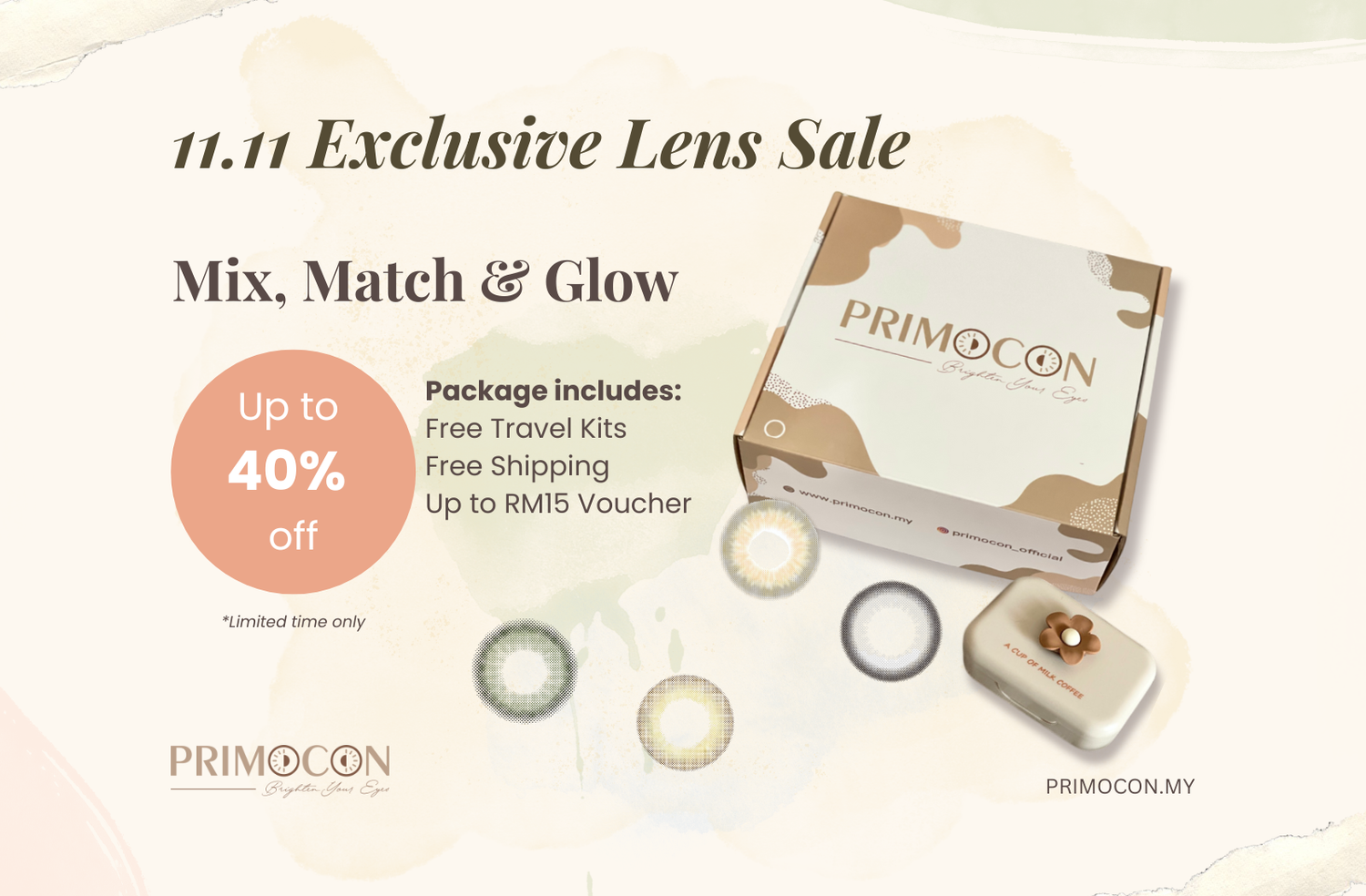 Primocon prioritize HIGH Comfortability on eyes with affordable price, also we have the most natural lens effect with various tone to fit everyone's need daily.